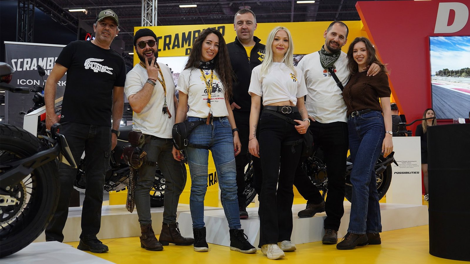 Fuarda sadece yeni motosikletler değil, aynı zamanda farklı etkinliklerle de keyifli anlar yaşandı. Scrambler Ducati Türkiye Kulübü, cumartesi günü standımızı ziyaret ederek Scrambler Ducati severleri fuarda bir araya getirdi. Kulüp üyeleriyle bir araya gelerek deneyimlerimizi paylaştık.