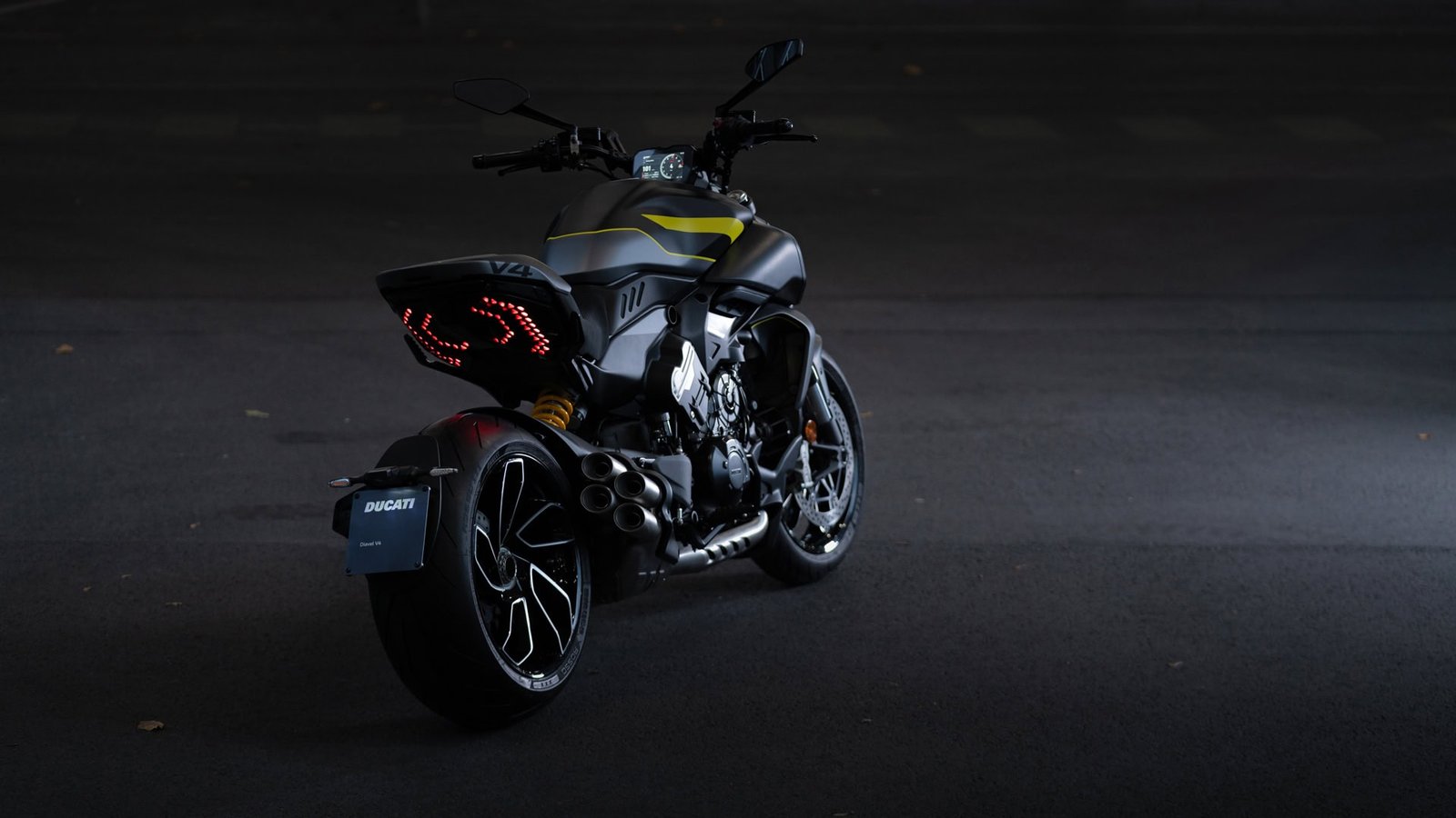 Diavel V4, ön kısmındaki kaslı yapısı ve ince kuyruğu ile dikkat çekiyor. Ducati’nin tasarım uzmanları tarafından geliştirilen bu motosiklet, özellikle ön ve arka LED aydınlatma gruplarıyla fark yaratıyor. Kuyruk altında yer alan nokta şeklindeki LED matrisi, hem çarpıcı hem de eşsiz bir görünüm sağlıyor. Bu detaylar, Diavel V4’ü bir bakışta tanınabilir hale getiriyor.