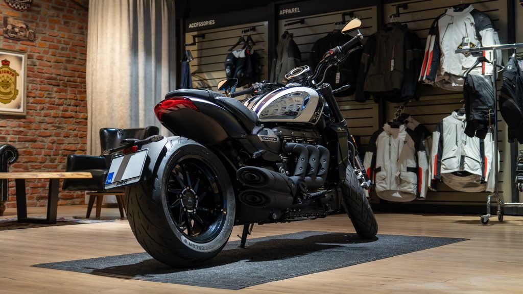 Rocket 3 R Evel Knievel Edition, dünyanın en büyük hacimli seri üretim motosiklet motoruna sahip: 2500 cc’lik üç silindirli motor, 225 Nm tork ve 182 PS güç üretiyor. Süspansiyon sistemi; Showa 47 mm ayarlanabilir ön çatallar ve arka monoshock RSU ile donatılırken, frenleme gücü Brembo Stylema kaliperli çift 320 mm ön diskler ve Brembo M4.32 dört pistonlu monoblok arka kaliperle birleşen 300 mm arka diskten geliyor. Optimize viraj ABS, çekiş kontrol sistemi ve Hill Hold fonksiyonu güvenlik desteklerini üst seviyeye taşırken; ride-by-wire teknolojisi, elektronik hız sabitleyici, dört farklı sürüş modu (Road, Rain, Sport, Rider), Triumph Shift Assist quickshifter (opsiyonel) gibi gelişmiş sistemler sürüş deneyimini zenginleştiriyor. TFT renkli ekran, kişiselleştirilebilir karşılama animasyonu ve isim ekleme özelliği sunarken; USB şarj portu gibi pratik detaylar da günlük kullanımı destekliyor.