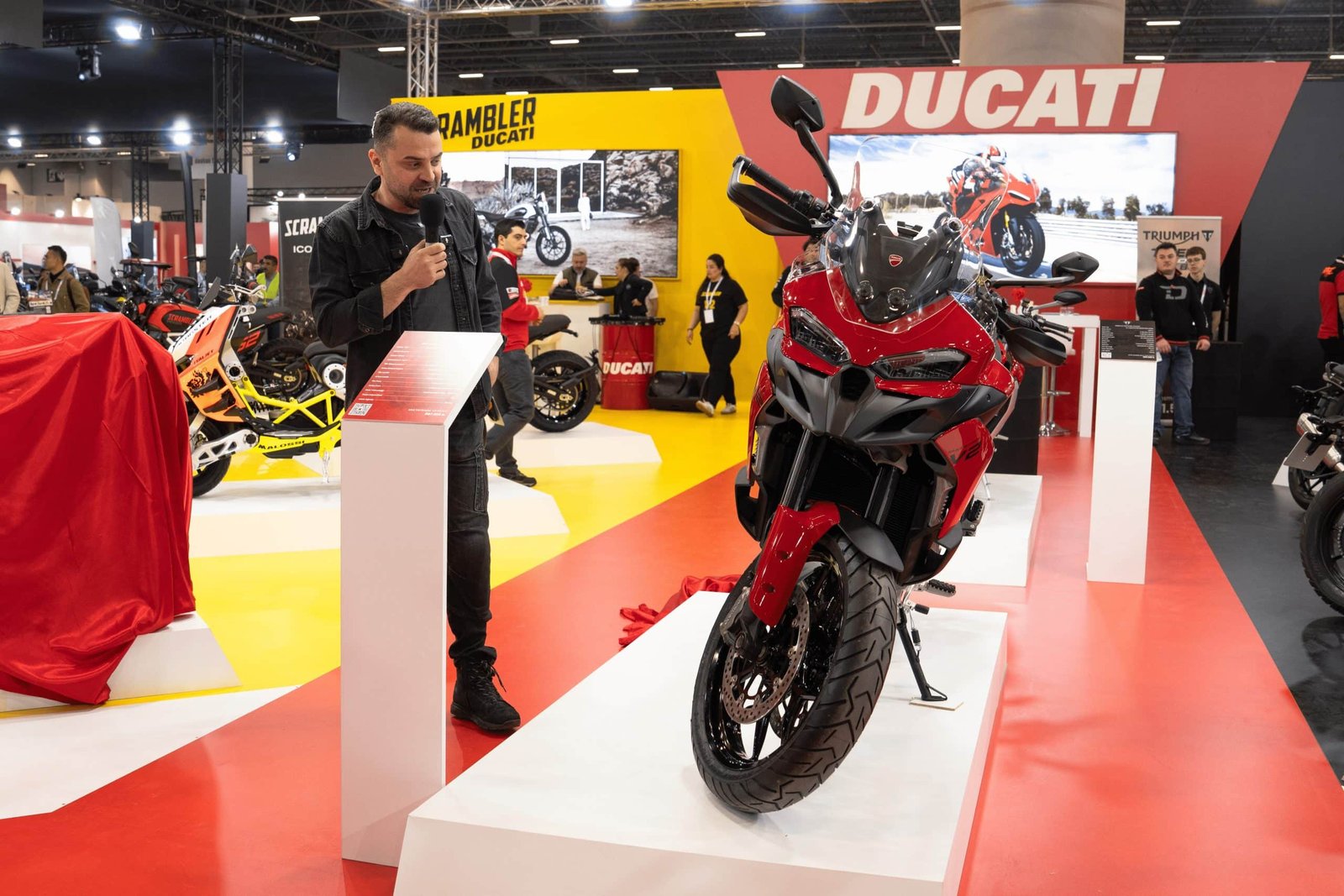 Moto Pixel Selçuk Yılmaz, Ducati’nin yeni modeli Multistrada V2’yi fuar ziyaretçileriyle buluşturdu. Yılmaz, motosikletin teknik özelliklerini aktararak, Desmodromic bakım gerektirmemesi ve fiyat-performans açısından 2025’in en dikkat çeken modellerinden biri olacağını belirtti. Ziyaretçiler, Multistrada V2’nin tasarımına ve teknolojik yeniliklerine büyük ilgi gösterdi.