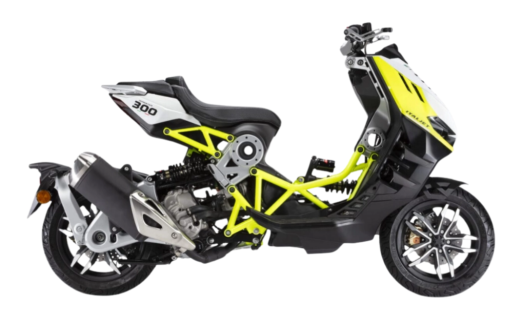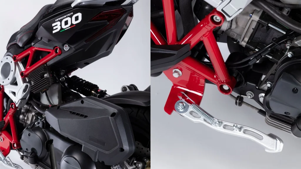 Dragster 125 ve Dragster 200'den sonra yeni ve daha güçlü bir motor bloğu ile tasarlanan Dragster 300, İtalyan tasarımı ve eşsiz performansın tek şaside buluşmasının harika bir örneği. Önceki modellerde kullanılan çizgilerin ve tasarımın korunduğu Dragster 300, şasisindeki bazı spesifikasyonlar ile daha güçlü bir motora uyum sağlayabilecek hale getirildi. Yeni özellikleri ile Dragster 300, kendi sınıfında bir scooterdan alabileceğiniz maksimum adrenalini size sağlıyor.