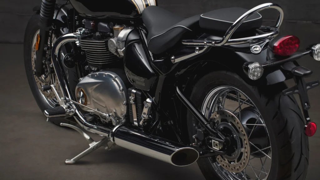 Eleştirmenlerden tam not alan 1200cc yüksek torklu paralel ikiz motor, artık daha hafif, daha duyarlı ve Euro 5 uyumlu. Geriye doğru uzanan plaj barları ve öne doğru ayak konumuyla benzersiz klasik İngiliz özel tutumu ve stili. Speedmaster'ın imza niteliğindeki taşıma düzeni, daha yüksek özellikli bileşenlerle geliştirilmiş ve önemli ölçüde ağırlık tasarrufu sağlanmıştır