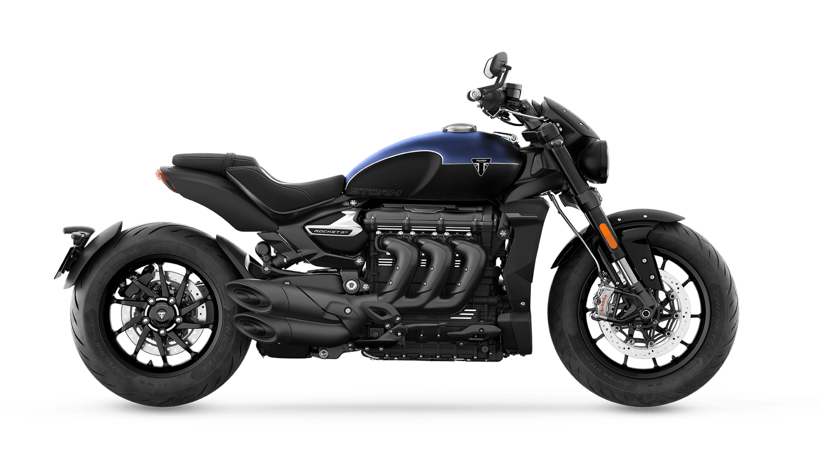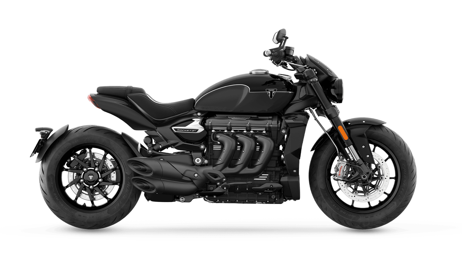 Dünyanın en büyük kapasiteli üretim motosiklet motorunun en son gelişimi. 2.458 cc'lik motor, her viteste anında gaz tepkisi ile patlayıcı hızlanma için 182 PS tepe gücü ile 225 NM'lik şaşırtıcı bir tork üretir. Hafif, spor tarzdaki 10 kollu alüminyum döküm jantlar, Rocket 3 Storm'un inanılmaz çevikliğine katkıda bulunur ve daha fazla tavır için siyah renkte kaplanmıştır.