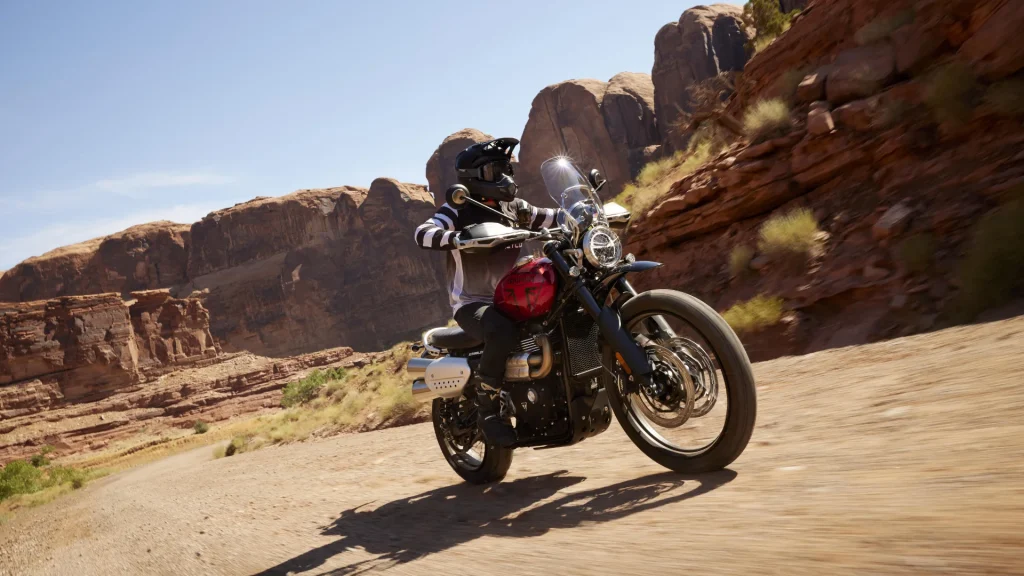 Scrambler'a özgü bir ayara sahip Yüksek Güçlü 1200cc Bonneville çift silindirli motor, hem yolda hem de arazide zahmetsiz performans için heyecan verici, tork açısından zengin bir gaz kelebeği tepkisi ve yumuşak, takip edilebilir güç dağıtımı sunar.