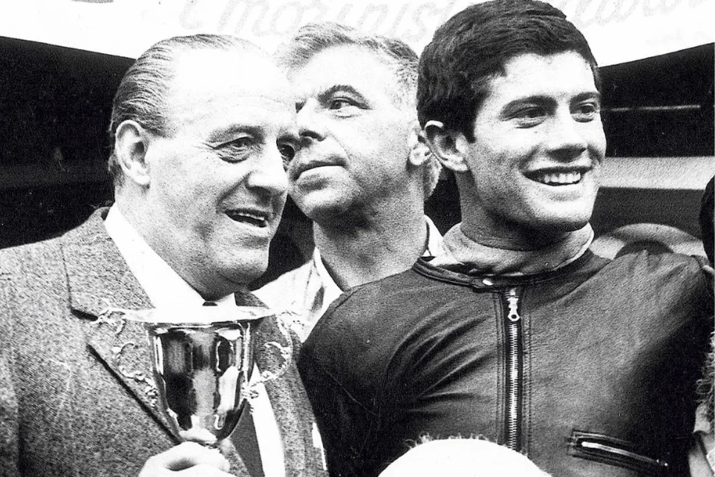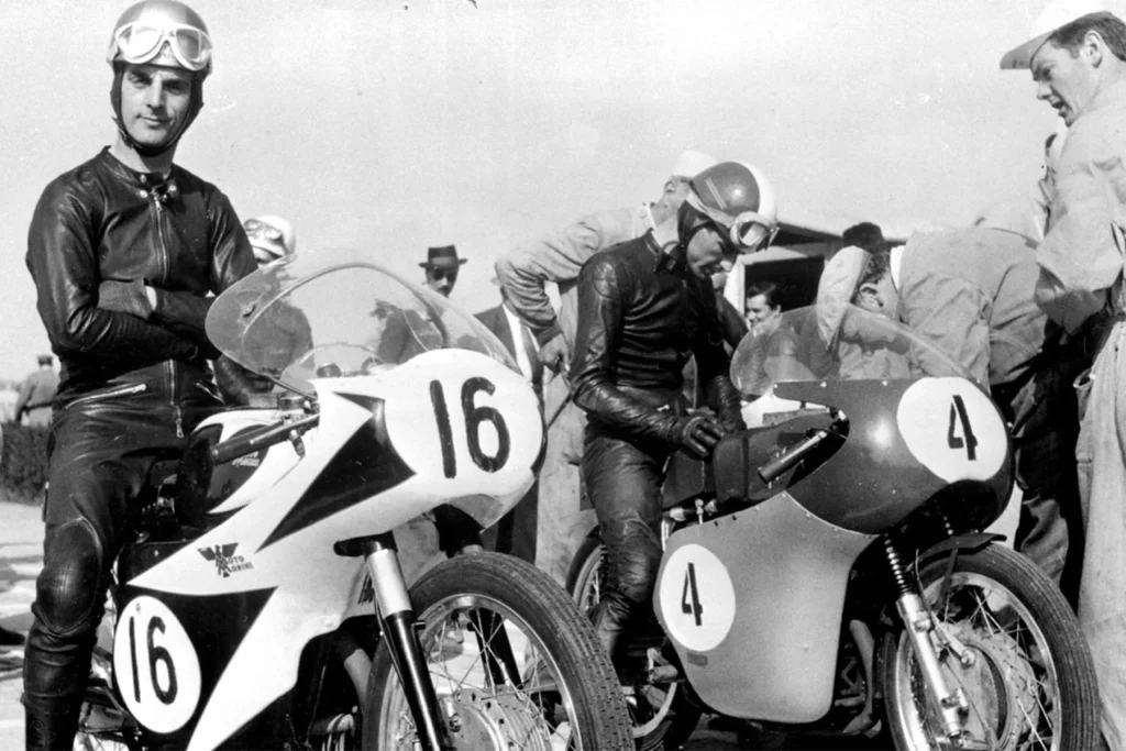 Moto Morini’ye bağlı bir başka sürücü o dönemde Angelo Bergamonti’dir (18 Mart 1939 – 4 Nisan 1971). 1957’de 175 Settebello modeli ile rezerv kategorisinde debut yapar ve birkaç yıl süren evlilik nedeniyle ara vermesine rağmen, 1964’te genç kategoride Morini 175 ile tekrar başlar. 1966’da Senior olur, Corsaro 125 ve 1967 İtalyan şampiyonasında Moto Morini’ye zafer kazandıran eski test motosikleti 250 Bialbero ile yarışır.
