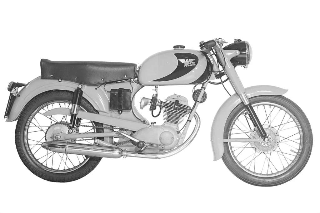 Alfonso Morini, dünya hız şampiyonasında sürekli olarak yer alması gerektiğine karar verir ve 250 cc GP motosikleti için yeni bir proje geliştirilir. Bu proje, Alfonso Drusiani’nin yarış departmanında sağ kolu olan Nerio Biavati tarafından geliştirilir. Emilio Mendogni’ye emanet edilen bu motosiklet, 1959’da Imola’da Shell Kupası’nı kazanacak, ancak daha sonra MV’lerle rekabet edecektir. 2 zamanlı 125 modelinin çöküşü, Moto Morini’yi daha ticari bir pazarda boşluğu doldurmaya zorlar. 175 cc hacime sahip tek silindirli ancak biraz küçültülmüş versiyonu fikrini reddetmek yerine, üretim maliyetlerini sınırlamak amacıyla bileşen sayısını azaltacak daha modern ve rasyonel bir model seçilir.