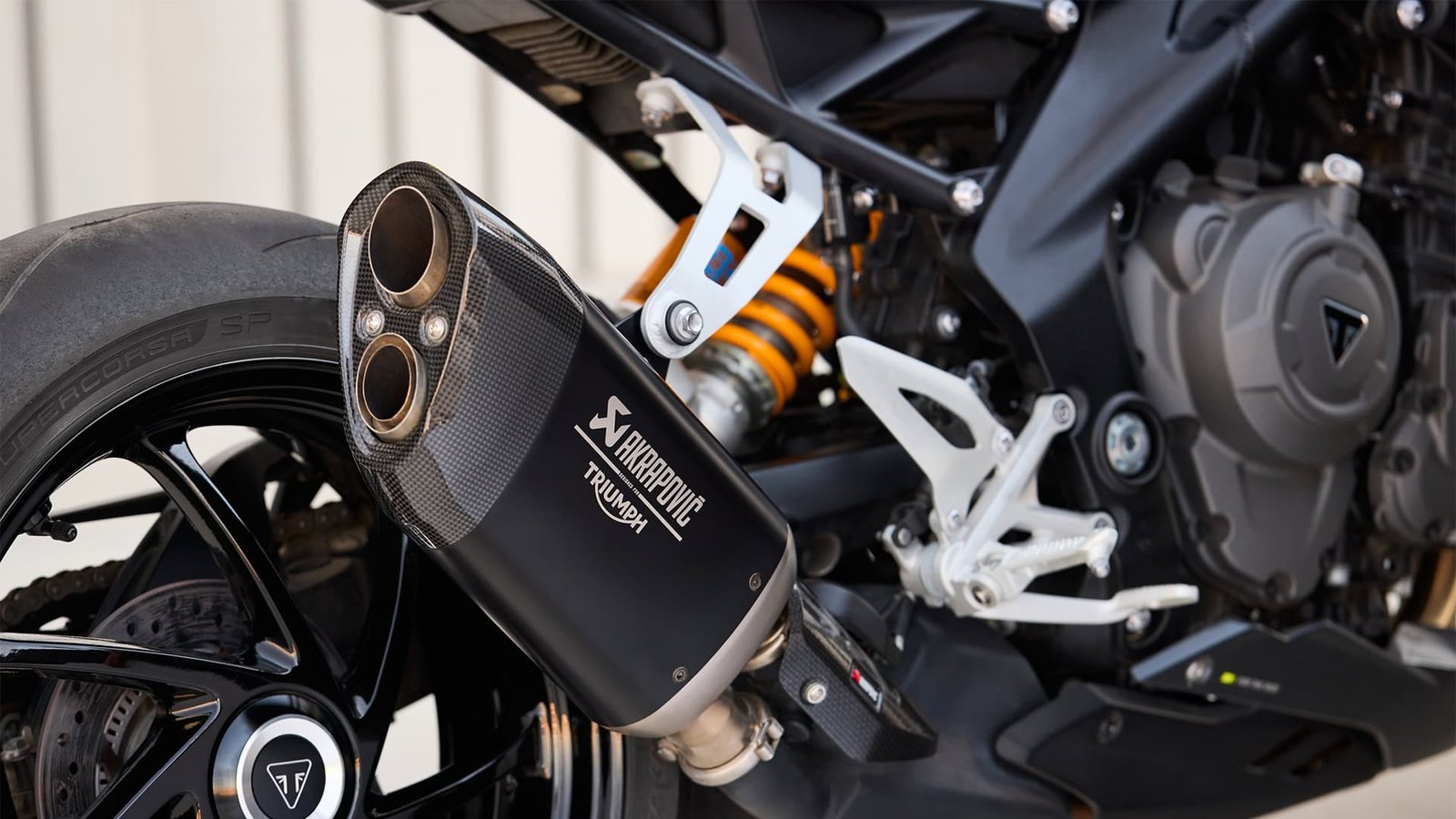 Yüksek performanslı bir motosikletin, güçlü bir fren sistemine sahip olması şarttır. Bu nedenle Triumph, yeni modelde Brembo Stylema fren sistemini tercih etti. Çift diskli ön frenler, her koşulda olağanüstü bir durma gücü sağlıyor. Sürüş güvenliği, motosikletin her bir detayında ön planda tutulmuş.